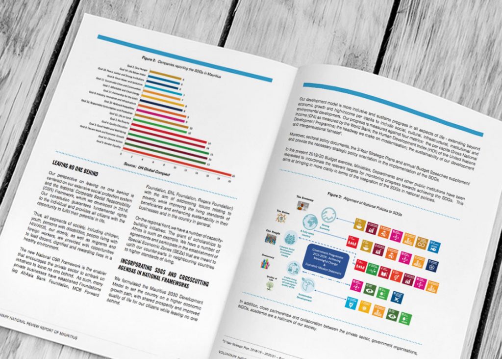 The Mauritius VNR project was headed by the Ministry of Foreign Affairs, Regional Integration and International Trade who also worked in close collaboration with the Mauritius Chamber of Commerce and Industry (MCCI). Successfully delivering the annual reports of MCCI for years, Uncut was recommended by the latter to the Ministry of Foreign Affairs to collaborate on this prestigious report.